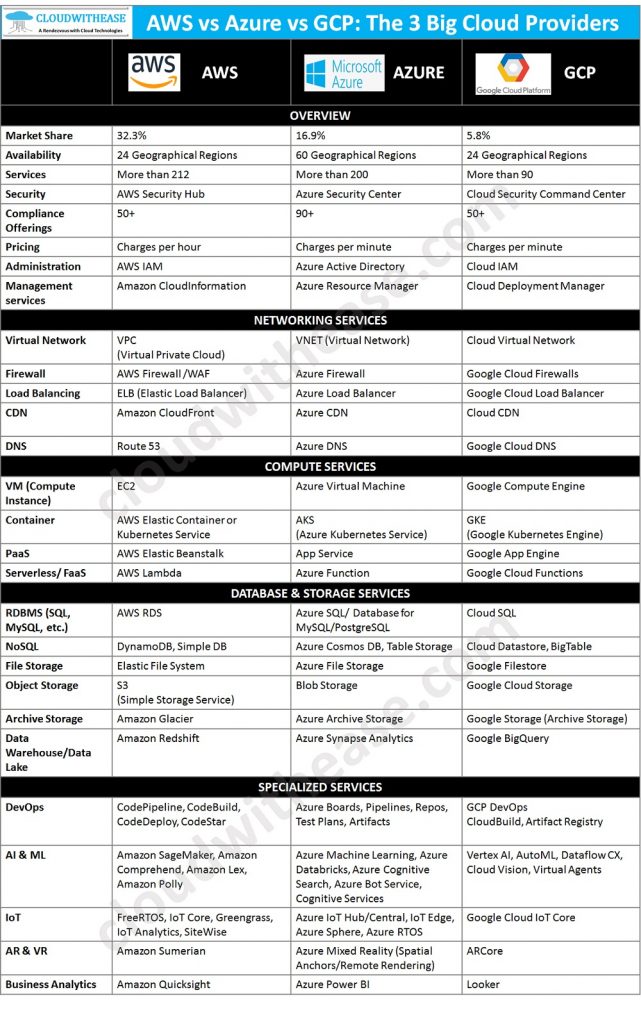 Below, we will understand the basic differences between AWS vs Azure vs Google cloud.