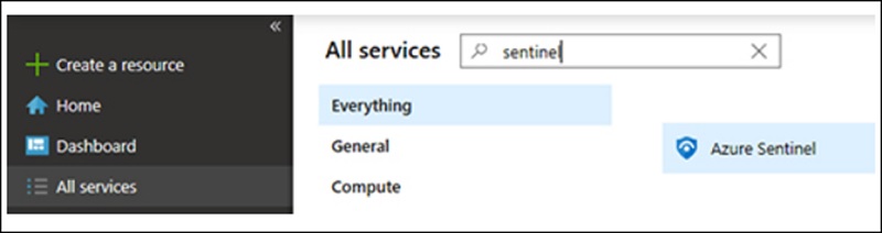 - Use all services, type Sentinel and click Azure Sentinel