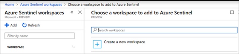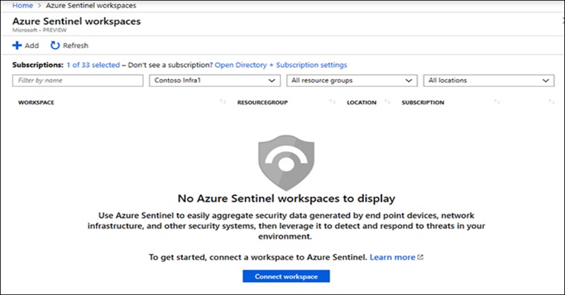 - Initial launch of Azure sentinel no workspace is associated to it