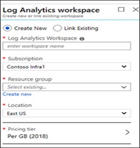 - In Log analytics workspace field, type name of workspace