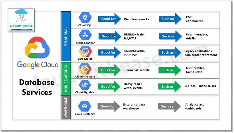 In the last blog, we discussed Google cloud storage options. Today we look more in detail about Google cloud database services and its features, how it works, use cases and so on.