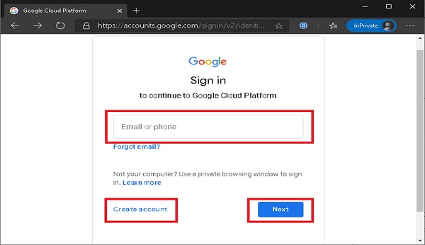 Step 3: Login to your Google Account. Use the ‘create an account’ button if we don’t have an existing Google account.