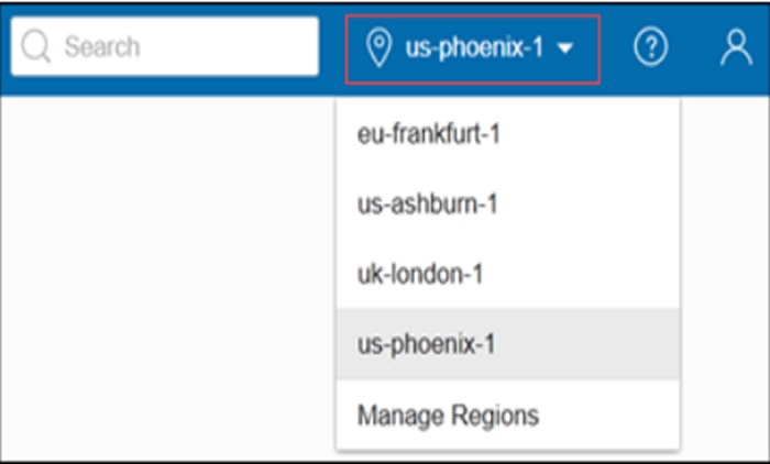 In Oracle cloud infrastructure web console, in region selector field near upper right-hand corner choose the region in which you want to create Oracle PaaS service instances.