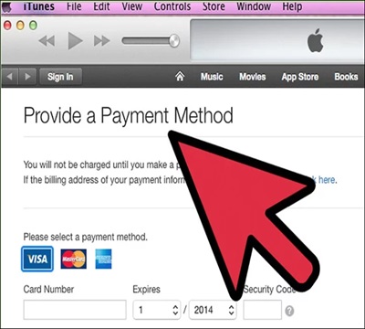 - Click the last two check boxes to deselect them (if you don’t want to receive email from the Apple Store), before clicking the Continue button. The Provide a Payment Method screen appears.